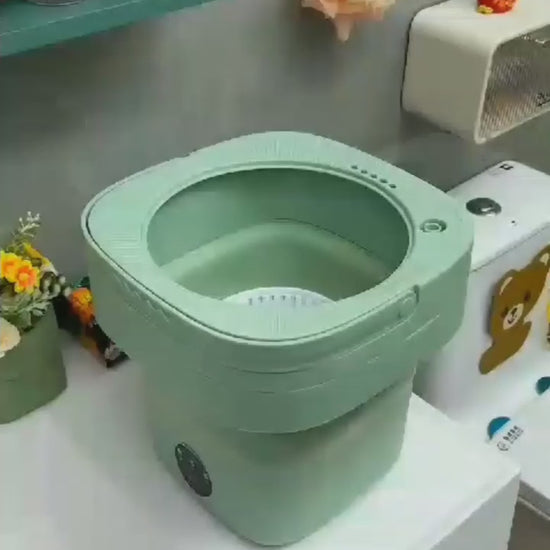 This foldable washing machine is a compact, portable laundry solution for small spaces. Easy to store, energy-efficient, and perfect for baby clothes, underwear, travel, dorms, and apartments.